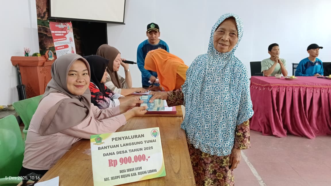 Bagaimana tidak, Sebanyak 44 Keluarga Penerima Manfaat (KPM) desa Suban Ayam telah menerima Bantuan Langsung Tunai (BLT) Dana Desa Tahun 2025, Jumat, 5 Desember 2025. Para KPM menerima bantuan tunai senilai Rp900.000, yang merupakan hak mereka untuk periode Juli hingga September 2025.